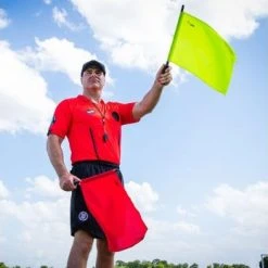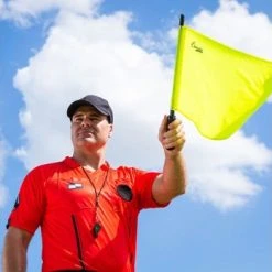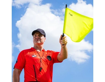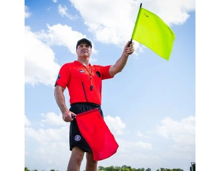 Grab hold of this set of 2 standard yellow and red soccer referee flags for linesman.