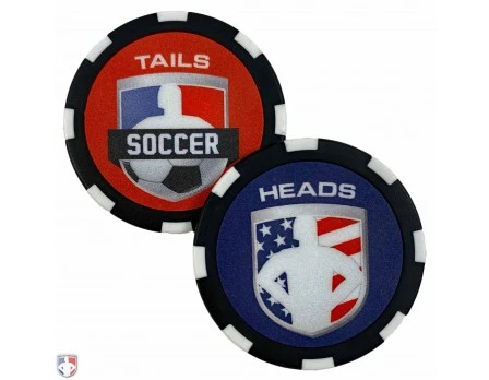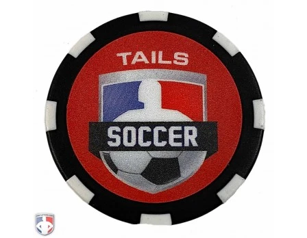 Your crew will “flip” over this referee flip coin. Made specifically for soccer referees, it has a patriotic design with the look and feel of a real poker chip! The poker chip material feels sturdy in your hand and is constructed to last a lifetime.